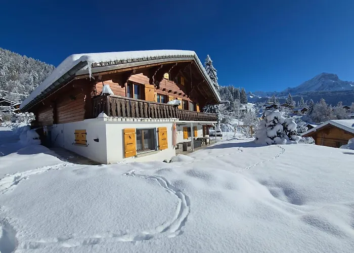 Das 50 m^2 große Apartment Ferienwohnung Chalet Le Slalom bietet einen Blick auf den Garten und liegt ungefähr 10 Autominuten vom Salzbergwerk von Bex entfernt Das 2-Zimmer-Apartment bietet einen Wasserpark, einen Spielplatz und einen Golfplatz zum Entspannen und Verjüngen an.